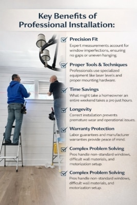 - Complex Problem Solving – Pros handle non-standard windows, difficult wall materials, and motorization setup.